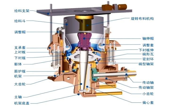 一般圓錐破碎機都是采用破碎執行部件直接擠壓物料的“單層破碎”。